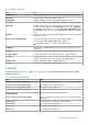 표 12. PXE 디바이스 n 설정 세부 정보 (계속) 옵션 설명 프로토콜 PXE 디바이스에 사용되는 프로토콜을 지정합니다. 이 옵션은 IPv4 또는 IPv6으로 설정됩니다. 기 본적으로 이 옵션은 IPv4로 설정됩니다. VLAN PXE 디바이스의 VLAN을 활성화합니다. 이 옵션은 활성화 또는 비활성화로 설정됩니다. 기본적으 로 이 옵션은 비활성화로 설정됩니다. VLAN ID PXE 디바이스의 VLAN ID를 표시합니다. VLAN 우선 순위 PXE 디바이스의 VLAN 우선 순위를 표시합니다. 표 13. HTTP 디바이스 n 설정 세부 정보 옵션 설명 인터페이스 HTTP 디바이스에 사용되는 NIC 인터페이스를 지정합니다. 프로토콜 HTTP 디바이스에 사용되는 프로토콜을 지정합니다. 이 옵션은 IPv4 또는 IPv6으로 설정됩니다. 기 본적으로 이 옵션은 IPv4로 설정됩니다. VLAN HTTP 디바이스의 VLAN을 활성화합니다. 이 옵션은 활성화 또는 비활성화로 설정됩니다.