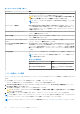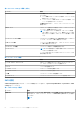 表 7. SATA Settings の詳細 (続き) オプション 説明 1. することがありますも必要に変更するには、 起動モードを 設定するには、 UEFI を押します。それ以外の場合は、このフィールドを非 RAID モードに設定してく ださい。 2. RAID モードでは ESXi と Ubuntu OS はサポートされません。 セキュリティフリーズロック POST 中に内蔵 SATA ドライブにセキュリティフリーズロックコマンドを送信します。 このオプションは、AHCI Mode にのみ適用されます。このオプションは、デフォルトで 有効に設定されてます。 書き込みキャッシュ POST 中に内蔵 SATA ドライブの コマンドを有効または無効にします。このオプション は、デフォルトで 無効に設定されています。 ポート n 選択されたデバイスのドライブタイプを設定します。 AHCI または RAID モードの場合、BIOS のサポートは常に有効です。 表 8.