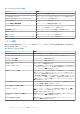 表 19. System Security の詳細 (続き) オプション 説明 Password Status システムパスワードをロックします。デフォルトでは、このオプションは ロック解除に設 定されています。 表 20. TPM 1.2 security の情報 オプション TPM Security 説明 メモ: TPM メニューは、TPM モジュールがインストールされている場合のみ使用可能です。 TPM の報告モードを制御することができます。デフォルトでは、TPM Security オプションは オフに設定 されています。変更できるのは、TPM Status(TPM ステータス)と、TPM Activation(TPM の有効化) (TPM Status(TPM ステータス)フィールドが On with Pre-boot Measurements(起動前測定ありでオン)また は On without Pre-boot Measurements(起動前測定なしでオン)のいずれかに設定されている場合)に 限られます。 TPM 1.