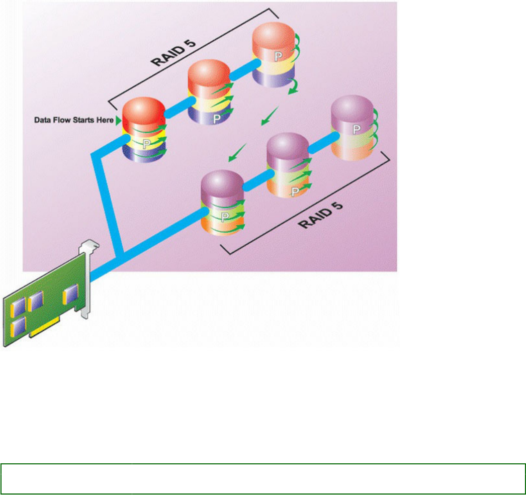 ● データはすべてのスパンにストライプされます。RAID 50 はディスク容量の点でより高価です。