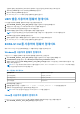 드라이브 교체 문제: 설치된 드라이브가 BOSS-S1 구성 유틸리티에 나열되지 않습니다. OpenManage가 물리적 디스크 오프라인 상태를 보고합니다. 발생 원인: 드라이브가 오류 상태이거나 펌웨어가 손상되었습니다. 개선 조치: 드라이브가 올바르게 삽입되도록 드라이브를 재장착합니다. 오류가 지속되면 DUP를 사용하여 드라이브 펌웨 어를 업데이트해 봅니다. 그래도 오류가 발생하는 경우, 오류가 있는 드라이브를 교체합니다. 컨트롤러 교체 문제: 컨트롤러의 UEFI 구성 유틸리티 메뉴 항목이 나타나지 않습니다. 발생 원인: 펌웨어 또는 하드웨어 장애입니다. 개선 조치: ● ● ● ● BOSS 어댑터에 있는 최신 펌웨어를 플래시합니다. 문제가 지속될 경우, 서버를 끄고 BOSS-S1 어댑터의 플러그를 뽑습니다. BOSS-S1 어댑터의 플러그를 PCIe 슬롯에 꽂습니다. 시스템을 부팅하고 UEFI 구성 유틸리티 메뉴를 다시 검사합니다. 문제가 지속되면 컨트롤러 장애를 참조하십시오.