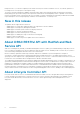 4 Integrating the Lifecycle Controller API This section outlines the resources required to integrate the Lifecycle Controller API into an application: • • • • • API Clients– Lists the API clients that are available to support WinRM or WSMAN. The API clients enables you to create an application in a variety of programming languages. Best Practices Guide— Provides information about the common work flows, where in ready-to-use Python scripts are provided for all the common work flows.