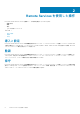 メモ、注意、警告 メモ: 製品を使いやすくするための重要な情報を説明しています。 注意: ハードウェアの損傷やデータの損失の可能性を示し、その危険を回避するための方法を説明しています。 警告: 物的損害、けが、または死亡の原因となる可能性があることを示しています。 Copyright © 2019 すべての著作権は Dell Inc. またはその子会社にあります。Dell、EMC、およびその他の商標は、Dell Inc. または その子会社の商標です。その他の商標は、それぞれの所有者の商標である場合があります。 Rev.