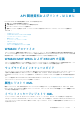 4 Lifecycle Controller API の統合 本項では、Lifecycle Controller API をアプリケーションに統合するために必要なリソースを説明します。 • • • • • API クライアント - WinRM または WSMAN への対応に使用できる API クライアントを紹介します。これらの API クライアント を使用すれば、さまざまなプログラミング言語でアプリケーションを作成できます。 ベストプラクティスガイド — 共通ワークフローについての情報を提供します。これには、すべての共通ワークフローのために すぐに使用できる Python スクリプトが提供されています。 サンプルスクリプトとツール — 追加の作業例および参照を提供します。 Lifecycle Controller-Remote Services を使用するアプリケーション — すでに Lifecycle Controller API と統合されている既存 アプリケーションをいくつかリストします。 WinRM および OpenWSMAN のインストールと設定 — WinRM および WSMAN を設定するため