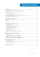 Notas, precauciones y advertencias NOTA: Una NOTA indica información importante que le ayuda a hacer un mejor uso de su producto. PRECAUCIÓN: Una ADVERTENCIA indica un potencial daño al hardware o pérdida de datos y le informa cómo evitar el problema. AVISO: Una señal de PRECAUCIÓN indica la posibilidad de sufrir daño a la propiedad, heridas personales o la muerte. Copyright © 2019 Dell Inc. o sus filiales. Todos los derechos reservados.
