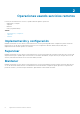2 Operaciones usando servicios remotos Con Lifecycle Controller Remote Services, es posible realizar las siguientes operaciones: • • • • Implementar y configurar Supervisar Mantener Crear y programar trabajos Temas: • • • Implementación y configuración Supervisar Mantener Implementación y configuración Mediante los diferentes recursos de Lifecycle Controller Remote Services, puede elegir diferentes configuraciones para un sistema a lo largo de todo su ciclo de vida.