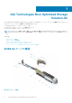 システム内部の作業を終えた後に 手順 1. システム カバーを取り付けます。 2. 必要に応じて、システムをラックに取り付けます。 詳細については、www.dell.com/poweredgemanuals でお使いのレール ソリューションに対応するレール取り付けガイドを参照し てください。 3. 周辺機器をリコネクトし、システムをコンセントに接続してから、システムの電源を入れます。 BOSS-S2 モジュールの取り外し 前提条件 注意: 修理作業の多くは、認定されたサービス技術者のみが行うことができます。製品マニュアルで許可されている範囲に限 り、またはオンラインサービスもしくは電話サービスおよびサポートチームの指示によってのみ、トラブルシューティングと簡 単な修理を行うようにしてください。Dell の許可を受けていない保守による損傷は、保証の対象となりません。システムに付 属のマニュアルの「安全にお使いいただくために」をお読みになり、指示に従ってください。 1. 「安全にお使いいただくために 、p. 18」に記載された安全ガイドラインに従ってください。 2. 「システム内部の作業を始める前に 、p.