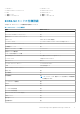 表 7. お使いのシステムのためのその他マニュアルのリソース (続き) タスク 文書 場所 オペレーティング システムのインストールにつ いての情報は、オペレーティング システムのマ ニュアルを参照してください。 www.dell.com/operatingsystemmanuals ドライバおよびファームウェアのアップデート www.dell.com/support/drivers についての情報は、本書の「ファームウェアとド ライバをダウンロードする方法」の項を参照し てください。 システムの管理 Dell が提供するシステム管理ソフトウェアにつ www.dell.
