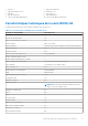 Tableau 1. Caractéristiques techniques de la carte BOSS-S2 (suite) Fonction ou caractéristique Carte BOSS-S2 Équilibrage de charge s.o. Reconstruction Oui (reconstruction automatique uniquement) Disque de secours Non Changement de priorité/taux de reconstruction Non Cache d’écriture/lecture de disque virtuel en écriture/lecture en avant Non REMARQUE : Le contrôleur BOSS-S2 ne prend pas en charge le cache du contrôleur. Support de la batterie s.o.