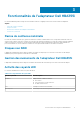 Tableau 7. Ressources de documentation supplémentaires pour votre système (suite) Tâche Document Emplacement Pour identifier la version de l’iDRAC disponible sur votre système, cliquez sur ? dans l’interface Web iDRAC > À propos. Pour plus d’informations concernant l’installation du système d’exploitation, reportez-vous à la documentation du système d’exploitation. www.dell.com/operatingsystemmanuals Pour plus d’informations sur la mise à jour des www.dell.