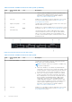 Table 43. AC PSU status indicator codes Power indicator codes Condition Green Indicates that a valid power source is connected to the PSU and the PSU is operational. Blinking amber Indicates an issue with the PSU. Not powered on Indicates that the power is not connected to the PSU. Blinking green Indicates that the firmware of the PSU is being updated. CAUTION: Do not disconnect the power cord or unplug the PSU when updating firmware. If firmware update is interrupted, the PSUs do not function.