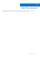 Notes, cautions, and warnings NOTE: A NOTE indicates important information that helps you make better use of your product. CAUTION: A CAUTION indicates either potential damage to hardware or loss of data and tells you how to avoid the problem. WARNING: A WARNING indicates a potential for property damage, personal injury, or death. © 2019 - 2020 Dell Inc. or its subsidiaries. All rights reserved. Dell, EMC, and other trademarks are trademarks of Dell Inc. or its subsidiaries.