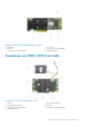 Abbildung 8. Entfernen der PERC H755N Front NVMe-Karte Einsetzen der PERC H755N Front NVMe-Karte Voraussetzungen VORSICHT: Manche Reparaturarbeiten dürfen nur von qualifizierten Servicetechnikern durchgeführt werden. Maßnahmen zur Fehlerbehebung oder einfache Reparaturen sollten Sie nur dann selbst durchführen, wenn dies laut Produktdokumentation genehmigt ist, oder wenn Sie vom Team des Online- oder Telefonsupports dazu aufgefordert werden.