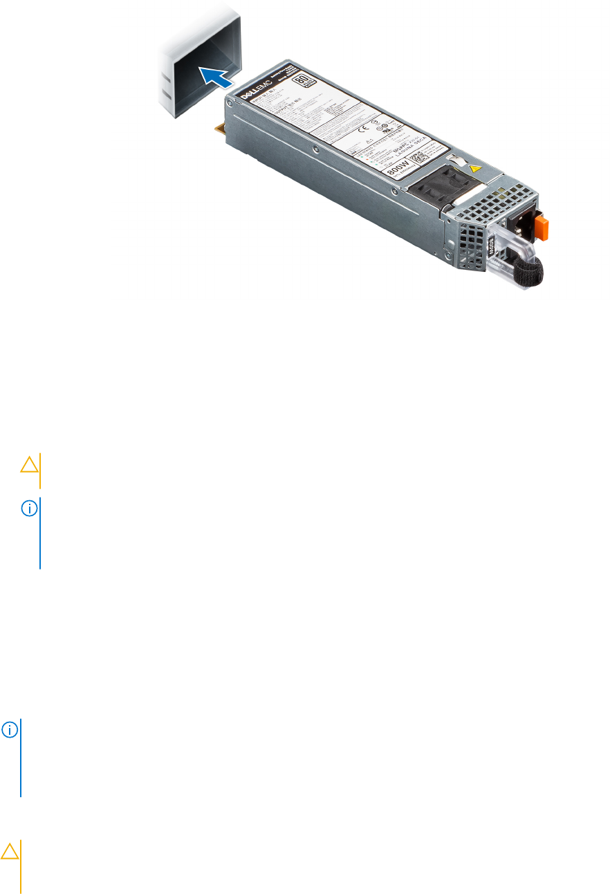 REMARQUE : Lors de l’installation, du remplacement à chaud ou de l’ajout à chaud d’un bloc d’alimentation, attendez