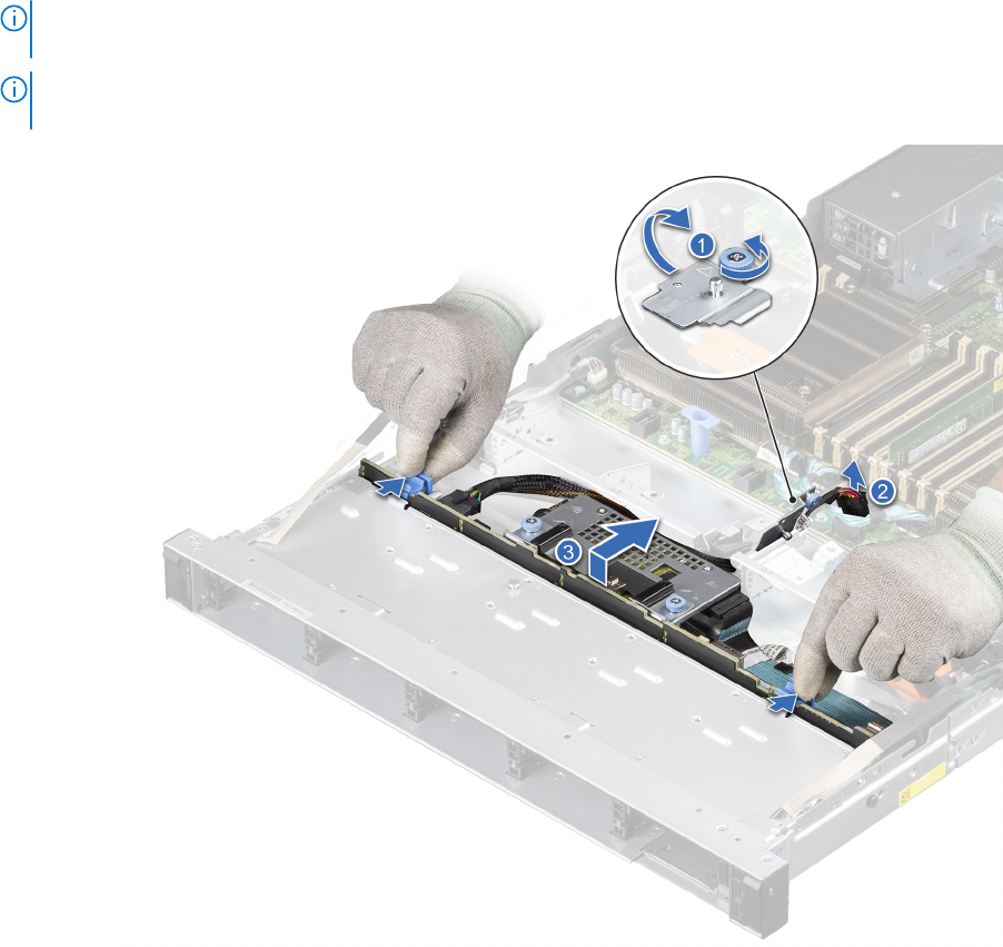 REMARQUE : Pour éviter d’endommager le fond de panier, assurez-vous que vous déplacez les câbles du panneau de