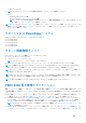 エンクロージャに対してコントローラーとエンクロージャ機能を実行できます。詳細については、で『OpenManage Storage Management User's Guide』を参照してください。 ● Lifecycle Controller — これは PERC の管理アプリケーションです。詳細については、「」を参照してください。 ● iDRAC — iDRAC でサポートされている機能の詳細については、にある『iDRAC ユーザーズ ガイド』を参照してください。 10 概要