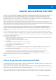 1 Gestion des systèmes Dell EMC Dell EMC offre des solutions de gestion qui aident les administrateurs IT à déployer, mettre à jour, surveiller et gérer efficacement les ressources IT. Les outils et solutions OpenManage vous permettent de répondre rapidement aux problèmes en facilitant la gestion efficace des serveurs Dell EMC, dans les environnements physiques, virtuels, locaux et distants, les environnements d’exploitation en mode intrabande et hors bande (sans agent).