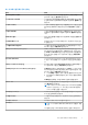 표 12. PXE 디바이스 n 설정 세부 정보 (계속) 옵션 설명 프로토콜 PXE 디바이스에 사용되는 프로토콜을 지정합니다. 이 옵션은 IPv4 또는 IPv6으로 설정됩니다. 기 본적으로 이 옵션은 OFF(꺼짐)로 설정됩니다. VLAN PXE 디바이스의 VLAN을 활성화합니다. 이 옵션은 활성화 또는 비활성화로 설정됩니다. 기본적으 로 이 옵션은 Disable(비활성화)로 설정됩니다. VLAN ID PXE 디바이스의 VLAN ID를 표시합니다. VLAN 우선 순위 PXE 디바이스의 VLAN 우선 순위를 표시합니다. 표 13. HTTP 디바이스 n 설정 세부 정보 옵션 설명 인터페이스 HTTP 디바이스에 사용되는 NIC 인터페이스를 지정합니다. 프로토콜 HTTP 디바이스에 사용되는 프로토콜을 지정합니다. 이 옵션은 IPv4 또는 IPv6으로 설정됩니다. 기 본적으로 이 옵션은 OFF(꺼짐)로 설정됩니다. VLAN HTTP 디바이스의 VLAN을 활성화합니다.