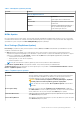 Tablo 16. Tümleşik Aygıt detayları (devamı) Seçenek Açıklama Dahili SD Birincil Kartı Varsayılan olarak birincil SD kartı, SD Kart 1 olarak seçilir. SD Kartı 1 mevcut değilse, denetleyici SD Kartı 2'yi birincil SD kartı olarak seçer. Bu seçenek varsayılan olarak SD Kartı 1 şeklinde ayarlanmıştır. OS Güvenlik Zamanlayıcısı Sisteminiz yanıt vermediği takdirde bu watchdog timer işletim sisteminizin kurtarılmasına yardımcı olur.