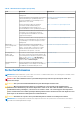 Tabelle 20. Speicherkanäle (fortgesetzt) Eigenschaft Definition ● – Normal/OK ● – Warnung/Nicht kritisch ● – Kritisch/Ausfall/Fehler Name Zeigt den Namen der Fremdkonfiguration als Link an. Der Link ermöglicht ein Zugreifen auf die physischen Laufwerke, die den fremden Datenträger bilden. Status Diese Eigenschaft zeigt den aktuellen Status der Fremdkonfiguration an. Zu den möglichen Werten gehören: ● Bereit – Die fremde Festplatte kann importiert werden und funktioniert nach dem Import normal.
