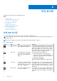 참고, 주의 및 경고 노트: 참고"는 제품을 보다 효율적으로 사용하는 데 도움이 되는 중요 정보를 제공합니다. 주의: 주의사항은 하드웨어의 손상 또는 데이터 유실 위험을 설명하며, 이러한 문제를 방지할 수 있는 방법을 알려줍니다. 경고: 경고는 재산 손실, 신체적 상해 또는 사망 위험이 있음을 알려줍니다. © 2017 ~ 2021년 Dell Inc. or its subsidiaries. All rights reserved. Dell, EMC 및 기타 상표는 Dell Inc. 또는 그 자회사의 상표입니다. 다른 상표는 해당 소유 자의 상표일 수 있습니다.