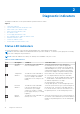 Table 4. iDRAC Quick Sync 2 indicators (continued) Wireless indicator code Condition Corrective action White solid Indicates that iDRAC Quick Sync 2 is ready to communicate. Press the iDRAC Quick Sync 2 button to turn off. If the LED fails to turn off, restart the system. If the problem persists, see the Getting help section. Blinks white rapidly Indicates data transfer activity. If the indicator continues to blink indefinitely, see the Getting help section.