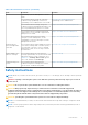 Notes, cautions, and warnings NOTE: A NOTE indicates important information that helps you make better use of your product. CAUTION: A CAUTION indicates either potential damage to hardware or loss of data and tells you how to avoid the problem. WARNING: A WARNING indicates a potential for property damage, personal injury, or death. © 2017 - 2021 Dell Inc. or its subsidiaries. All rights reserved. Dell, EMC, and other trademarks are trademarks of Dell Inc. or its subsidiaries.