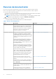 Recursos de documentación En esta sección se proporciona información sobre los recursos de documentación para el sistema. Para ver el documento que aparece en la tabla de recursos de documentación, realice lo siguiente: ● En el sitio web de soporte de Dell EMC: 1. Haga clic en el vínculo de documentación que se proporciona en la columna Ubicación de la tabla. 2. Haga clic en el producto necesario o la versión del producto necesaria.