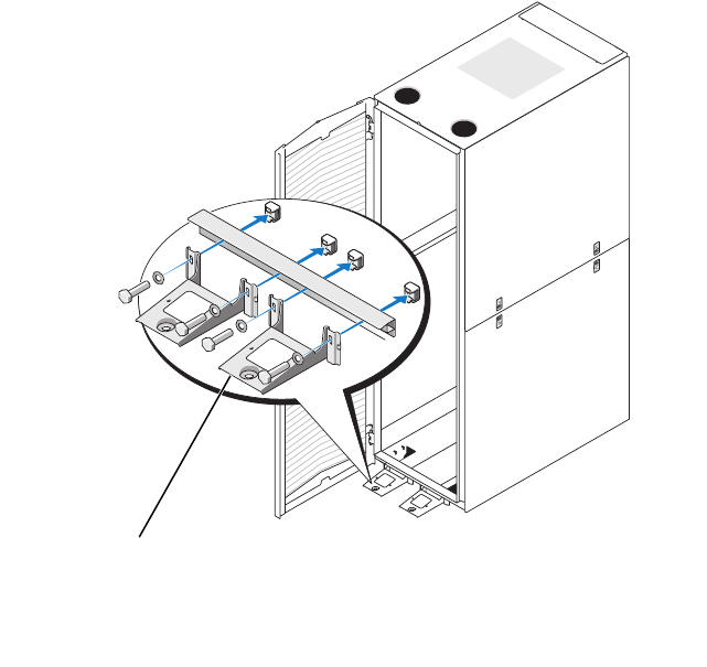 Legen Sie die vorderen Stabilisatoren jeweils vor den Rackrahmensockel