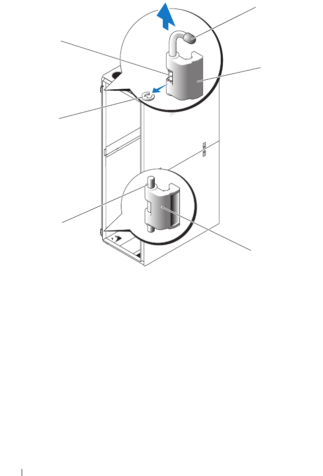 ヒンジピン、固定クリップおよびスプリングを安全な場所に置き