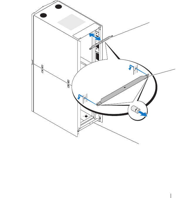 図 1-18. 背面扉のスタビライザバーの取り外しと取り付け