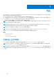 표 20. 시스템에 대한 추가 설명서 리소스 (계속) 작업 시스템 관리 문서 위치 드라이버 및 펌웨어 업데이트에 대한 자세한 내 용은 이 문서의 펌웨어 및 드라이버 다운로드 방 법 섹션을 참조하십시오. www.dell.com/support/drivers Dell에서 제공하는 시스템 관리 소프트웨어에 대 한 자세한 내용은 Dell OpenManage 시스템 관리 개요 안내서를 참조하십시오. www.dell.com/poweredgemanuals OpenManage 설정, 사용, 문제 해결에 대한 자세 한 내용은 Dell OpenManage Server Administrator 사용자 가이드를 참조하십시오. www.dell.com/openmanagemanuals > OpenManage Server Administrator Dell OpenManage Enterprise 설치, 사용, 문제 해 결에 대한 정보는 Dell OpenManage Enterprise 사 용자 가이드를 참조하십시오.