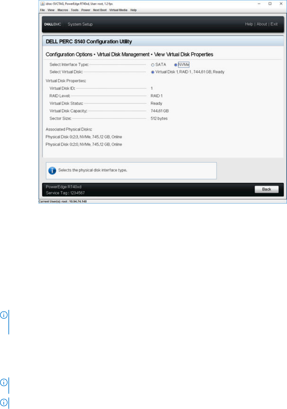 1. Öffnen Sie das Dell PERC S140 Configuration Utility (Dell PERC S140-Konfigurationsdienstprogramm). Siehe Aufrufen des DELL