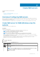 2 Create NAS servers This chapter includes the following information. Topics: • • • Overview of configuring NAS servers Create NAS server for SMB (Windows-only) file systems Change NAS server settings Overview of configuring NAS servers Before you can provision file storage on the storage system, a NAS server must be running on the system. A NAS server is a file server that uses the SMB protocol, NFS protocol, or both to share data with network hosts.
