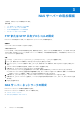 3 NAS サーバーの追加機能 この章は、次のセクションで構成されています。 トピック: • • • • FTP または SFTP 共有プロトコルの構成 NAS サーバー ネットワークの構成 NDMP の保護およびイベントの有効化 NAS サーバー セキュリティの構成 FTP または SFTP 共有プロトコルの構成 NAS サーバーが作成されていれば、FTP または SFTP(FTP over SSH)が構成できます。 前提条件 パッシブ モードの FTP はサポートされていません。 このタスクについて FTP アクセスは、SMB と同じ方法で認証できます。認証が完了すると、セキュリティおよび権限に関して、アクセスは SMB と同 じになります。形式が domain@user または domain\user の場合は、SMB 認証が使用されます。SMB 認証では、Windows ドメ イン コントローラーを使用します。 手順 1. [Storage] > [NAS Servers] > [[nas server]] > [Sharing Protocols] > [FTP]タブを選択します。 2.