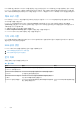 참고, 주의 및 경고 노트: 참고"는 제품을 보다 효율적으로 사용하는 데 도움이 되는 중요 정보를 제공합니다. 주의: 주의사항은 하드웨어의 손상 또는 데이터 유실 위험을 설명하며, 이러한 문제를 방지할 수 있는 방법을 알려줍니다. 경고: 경고는 재산 손실, 신체적 상해 또는 사망 위험이 있음을 알려줍니다. © 2020 - 2021 Dell Inc. or its subsidiaries. All rights reserved. Dell, EMC 및 기타 상표는 Dell Inc. 또는 그 자회사의 상표입니다. 다른 상표는 해당 소유자 의 상표일 수 있습니다.