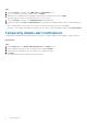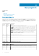 2 Managing Alerts This chapter includes: Topics: • • • • Events and alerts Monitor alerts Configure notification preferences for alerts Temporarily disable alert notifications Events and alerts Events provide information about changes to the system. Alerts are events that require attention. Most alerts indicate that there is a problem with the system. The system displays ongoing alerts in the dashboard on the Alerts card.