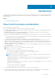 Notes, cautions, and warnings NOTE: A NOTE indicates important information that helps you make better use of your product. CAUTION: A CAUTION indicates either potential damage to hardware or loss of data and tells you how to avoid the problem. WARNING: A WARNING indicates a potential for property damage, personal injury, or death. © 2020 Dell Inc. or its subsidiaries. All rights reserved. Dell, EMC, and other trademarks are trademarks of Dell Inc. or its subsidiaries.