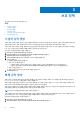 참고, 주의 및 경고 노트: 참고"는 제품을 보다 효율적으로 사용하는 데 도움이 되는 중요 정보를 제공합니다. 주의: 주의사항은 하드웨어의 손상 또는 데이터 유실 위험을 설명하며, 이러한 문제를 방지할 수 있는 방법을 알려줍니다. 경고: 경고는 재산 손실, 신체적 상해 또는 사망 위험이 있음을 알려줍니다. © 2020 - 2021 Dell Inc. or its subsidiaries. All rights reserved. Dell, EMC 및 기타 상표는 Dell Inc. 또는 그 자회사의 상표입니다. 다른 상표는 해당 소유자 의 상표일 수 있습니다.