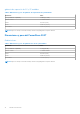 Tabla 12. Puertos de red relacionados con los dispositivos Modelo PowerStore X (continuación) Puerto Servicio 80 y 9000 Protocolo Dirección de acceso Descripción vSphere Web Access TCP Entrante Acceso para el plug-in de vSphere Update Manager Web Client para vSphere Web Client. 162 o entre 1024 y 49151 SNMP UDP Saliente Comunicaciones de SNMP. Si está cerrado, los mecanismos de alerta del sistema de almacenamiento que se basan en SNMP no se enviarán.