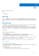 참고, 주의 및 경고 노트: 참고"는 제품을 보다 효율적으로 사용하는 데 도움이 되는 중요 정보를 제공합니다. 주의: 주의사항은 하드웨어의 손상 또는 데이터 유실 위험을 설명하며, 이러한 문제를 방지할 수 있는 방법을 알려줍니다. 경고: 경고는 재산 손실, 신체적 상해 또는 사망 위험이 있음을 알려줍니다. © 2020 - 2021 Dell Inc. or its subsidiaries. All rights reserved. Dell, EMC 및 기타 상표는 Dell Inc. 또는 그 자회사의 상표입니다. 다른 상표는 해당 소유자 의 상표일 수 있습니다.