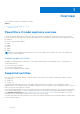 1 Overview The following information is included in this chapter. Topics: • • PowerStore X model appliance overview Supported switches PowerStore X model appliance overview PowerStore X model supports block (SAN-only), and vVol workloads with a hypervisor installed on the system. The system software is deployed on the hypervisor, which enables deployment of virtual machines (VMs) and customer applications within the hardware.