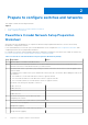 2 Prepare to configure switches and networks This chapter contains the following information. Topics: • • PowerStore X model Network Setup Preparation Worksheet Initial Configuration Worksheet PowerStore X model Network Setup Preparation Worksheet Work with your network administrator to complete the Network Setup Preparation Worksheet to reserve the necessary information to configure the switches.