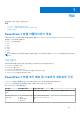 참고, 주의 및 경고 노트: 참고"는 제품을 보다 효율적으로 사용하는 데 도움이 되는 중요 정보를 제공합니다. 주의: 주의사항은 하드웨어의 손상 또는 데이터 유실 위험을 설명하며, 이러한 문제를 방지할 수 있는 방법을 알려줍니다. 경고: 경고는 재산 손실, 신체적 상해 또는 사망 위험이 있음을 알려줍니다. © 2020 - 2021 Dell Inc. or its subsidiaries. All rights reserved. Dell, EMC 및 기타 상표는 Dell Inc. 또는 그 자회사의 상표입니다. 다른 상표는 해당 소유자 의 상표일 수 있습니다.