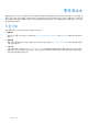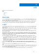 참고, 주의 및 경고 노트: 참고"는 제품을 보다 효율적으로 사용하는 데 도움이 되는 중요 정보를 제공합니다. 주의: 주의사항은 하드웨어의 손상 또는 데이터 유실 위험을 설명하며, 이러한 문제를 방지할 수 있는 방법을 알려줍니다. 경고: 경고는 재산 손실, 신체적 상해 또는 사망 위험이 있음을 알려줍니다. © 2020 - 2021 Dell Inc. or its subsidiaries. All rights reserved. Dell, EMC 및 기타 상표는 Dell Inc. 또는 그 자회사의 상표입니다. 다른 상표는 해당 소유자 의 상표일 수 있습니다.