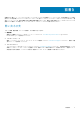 メモ、注意、警告 メモ: 製品を使いやすくするための重要な情報を説明しています。 注意: ハードウェアの損傷やデータの損失の可能性を示し、その危険を回避するための方法を説明しています。 警告: 物的損害、けが、または死亡の原因となる可能性があることを示しています。 © 2020 Dell Inc. またはその関連会社。。Dell、EMC、およびその他の商標は、Dell Inc.