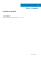 Notes, cautions, and warnings NOTE: A NOTE indicates important information that helps you make better use of your product. CAUTION: A CAUTION indicates either potential damage to hardware or loss of data and tells you how to avoid the problem. WARNING: A WARNING indicates a potential for property damage, personal injury, or death. © 2019 2020 Dell Inc. or its subsidiaries. All rights reserved. Dell, EMC, and other trademarks are trademarks of Dell Inc. or its subsidiaries.