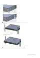 Front mount 5-inch offset mount Rear mount 4. Screw the single-switch L-bracket to the two-post rack using two M4 screws (length 6.8 mm) for each bracket. Torque the screws to 10 inch-lbs. To remove the switch from the two-post rack, remove the four screws from the two-post rack and slide the switch from the rack. MPS-3S two-post installation This installation procedure is for the three-slot EPS shelf. Use mounting brackets for front, 5-inch offset, or rear-mount twopost installation.