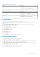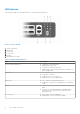 LED behavior The following S3048–ON switch LED behavior is seen during ONIE operations: Figure 4. S3048–ON LEDs 1. 2. 3. 4. 5. 6. System Status LED Master LED Power LED Locator LED Fan LED Management Port LEDs Table 1.