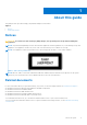 Notes, cautions, and warnings NOTE: A NOTE indicates important information that helps you make better use of your computer. CAUTION: A CAUTION indicates either potential damage to hardware or loss of data and tells you how to avoid the problem. WARNING: A WARNING indicates a potential for property damage, personal injury, or death. © 2021 - 2016 Dell Inc. or its subsidiaries. All rights reserved. Dell, EMC, and other trademarks are trademarks of Dell Inc. or its subsidiaries.